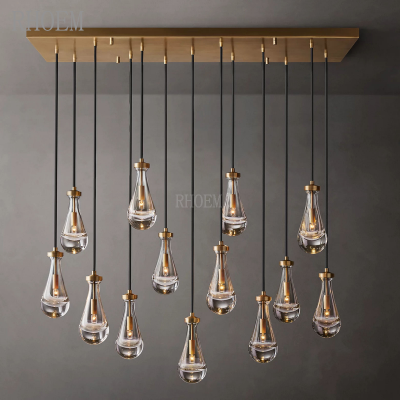Modern Rectangular Glass Teardrop Pendant Light 72″W x 24″D